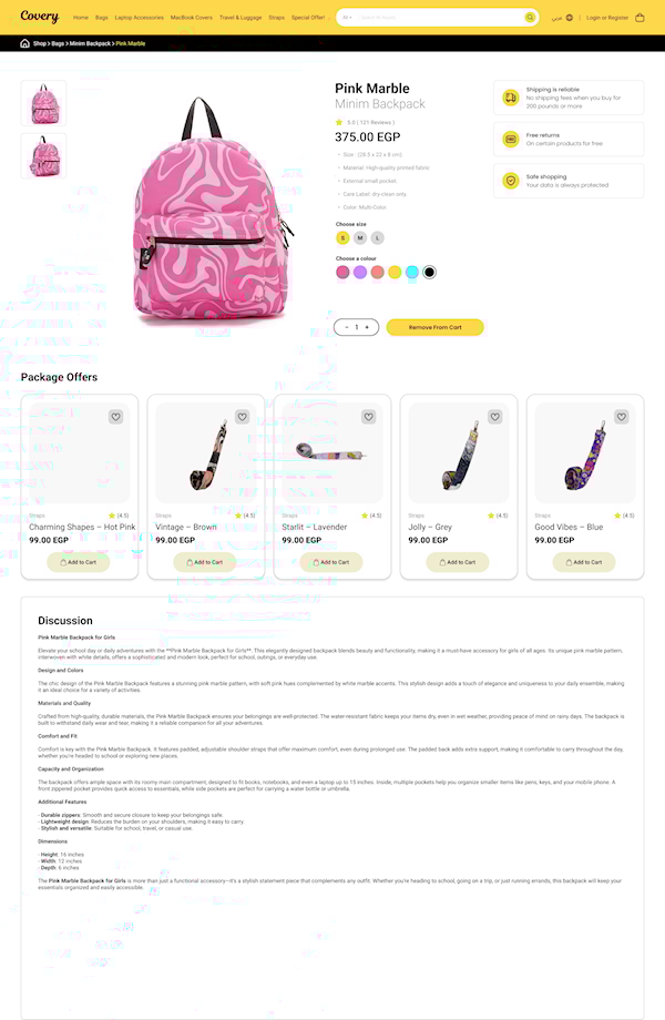 With a keen eye and deep focus on the everyday needs of our customers, in terms of types of products, trends of style, durability, and utmost quality of materials, we started our journey with our very first mobile case in 2018. Our goal was to provide excellent craftsmanship in all stages of product-making, from textile design and creation, printing to sewing and packaging, so as to introduce to the market a proudly Made-In-Egypt, top-notch product that fulfills the trendy users’ needs and adds a touch of bright creativity to their day.